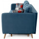 Диван украшают декоративная отстрочка, декоративные утяжки с пуговицами на подушках. Опоры дивана из массива березы подчеркивают стилистику.