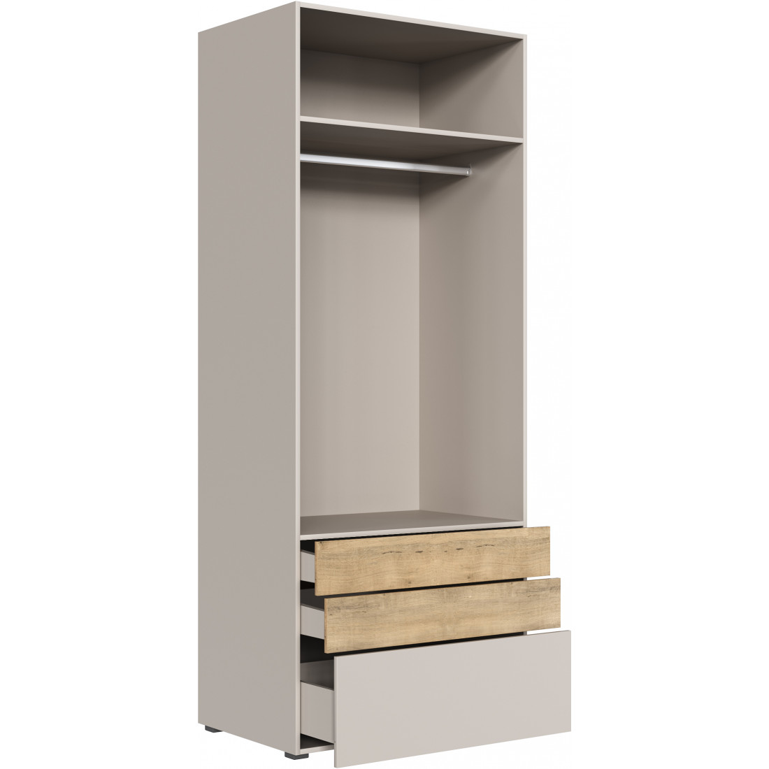 •  Шкаф двухстворчатый, укомплектованный полкой, штангой и 3-мя выдвижными ящиками;