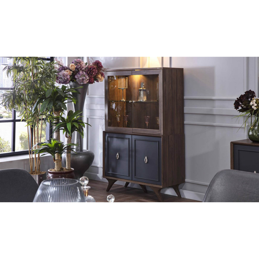 Одностворчатый шкаф витрина для посуды в гостиную Алегро ALEG-12