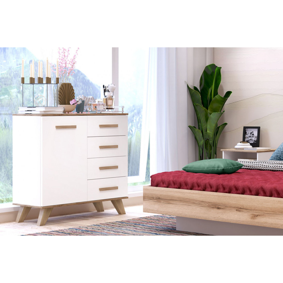 Комод 900 Вега Скандинавия (глянец, белый + дуб каньон)