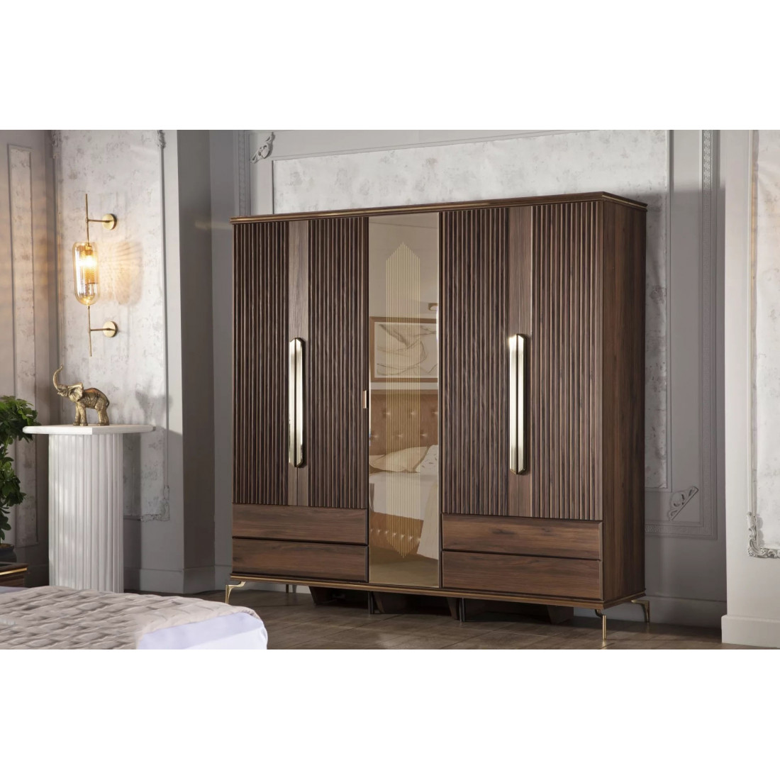 Пятидверный шкаф для одежды с зеркалом "Монтего" – это великолепное изделие в современном стиле.