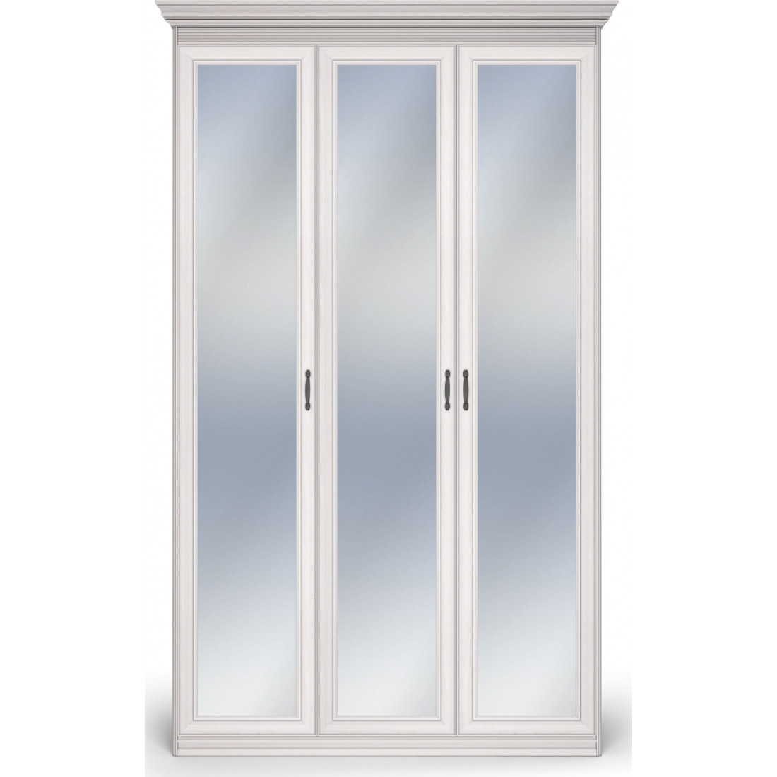 Шкаф 3-х дверный с глухой и зеркальной дверью Неаполь Ясень анкор светлый (патина "серебро")