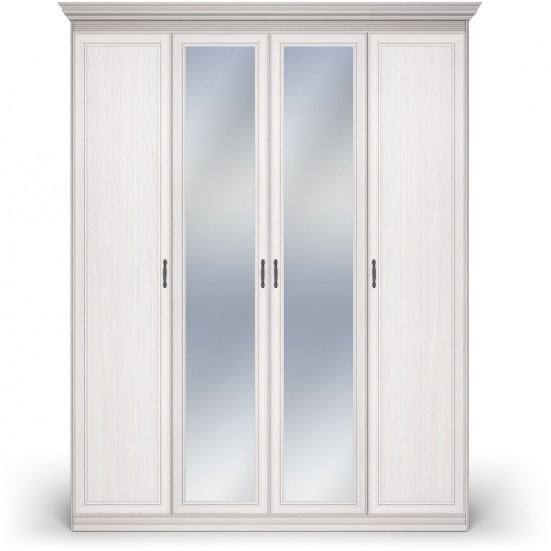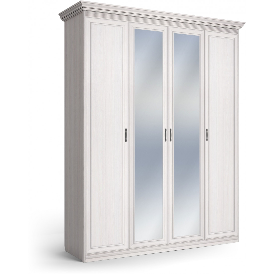 Шкаф 4-х дверный с зеркальными и глухими дверями Неаполь Ясень анкор светлый (патина "серебро")