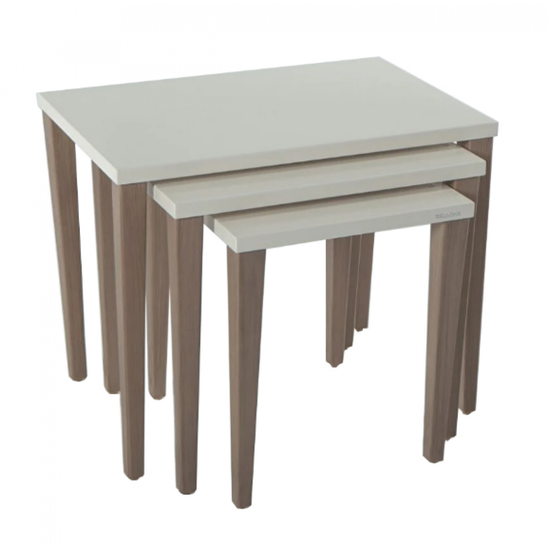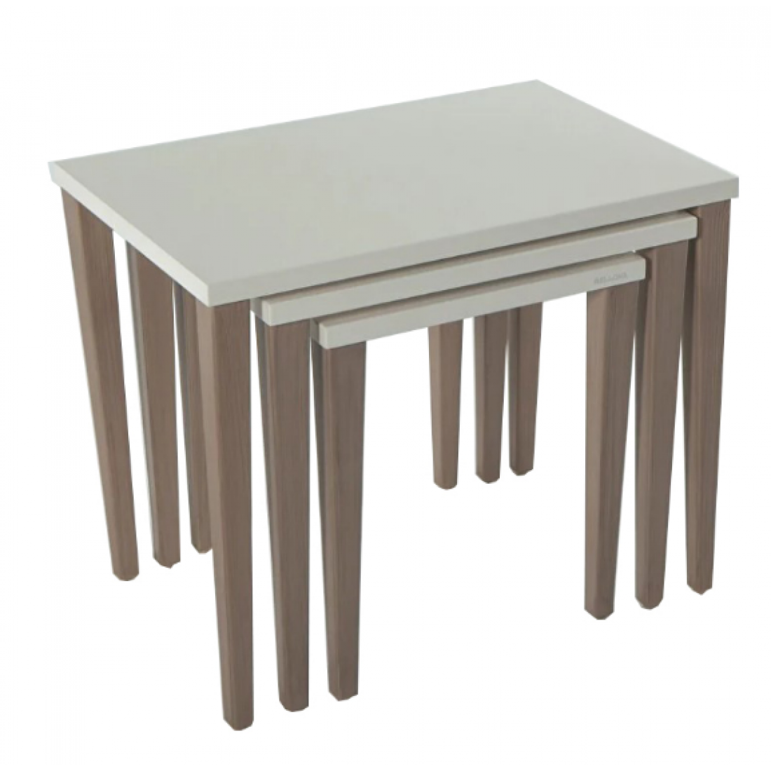 Набор из трех журнальных столиков Mavenna разного размера. При необходимости можно собрать в один или разместить по одному в разных частях дома. Размер столиков: 59х40х47 см, 48х40х44 см, 36х40х41 см.