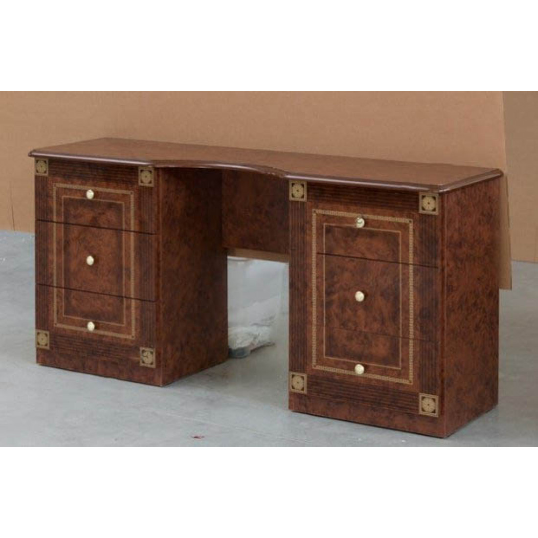 Туалетный столик Рома (орех) от Российской фабрики «ДИА мебель» выполнен в строгом, классическом стиле. Цвет орех в сочетании с глянцевым покрытием придает элегантность. Маленькие аккуратные ручки цвета позолоты придают атмосферу роскоши. Вся коллекция "Рома" предназначена только для истинных ценителей элегантного классического стиля.